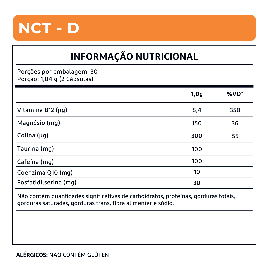 NCT – D é um suplemento avançado desenvolvido para quem busca foco, energia e clareza mental no dia a dia. Com uma combinação precisa de colina, cafeína, taurina e vitamina B12, ele potencializa o desempenho cognitivo e físico de forma eficaz.