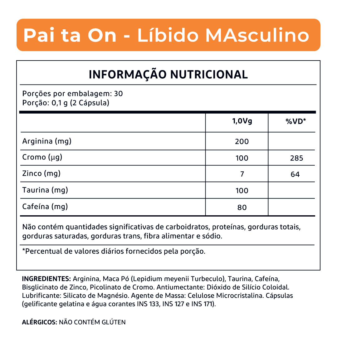 Redescubra sua vitalidade com Pai ta On, um suplemento desenvolvido especialmente para aumentar a libido masculina e promover o bem-estar geral. Com uma combinação poderosa de nutrientes, é a escolha ideal para homens que desejam melhorar sua performance e energia.